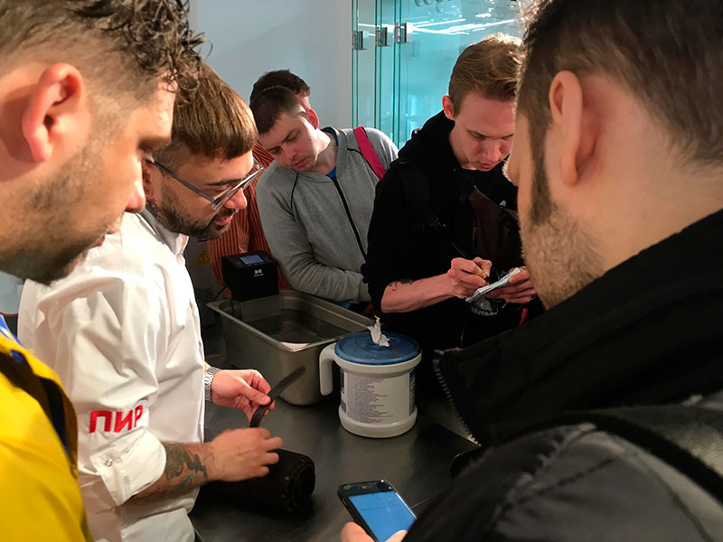 Первый день «Завтрака» был богат выступлениями петербургских поваров. Антон Исаков, Евгений Викентьев, Илья Кокотовский — они представляли своё мастерство в разных залах, и каждого из них потом окружали слушатели, продолжая задавать вопросы и фотографировать представленные блюда. Ребята демонстрировали креативный подход к известным продуктам и лаконичную подачу.