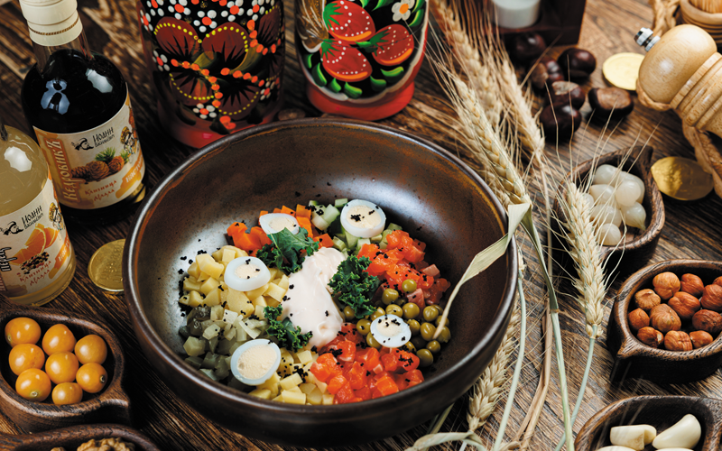 Ресторану русской кухни уже более 15 лет. Мы постоянно работаем над меню, делаем его более интересным для современного потребителя, адаптируем аутентичные блюда под вкусы гостей, но при этом не отходим от концепции и русских традиций. Например, весной этого года мы ввели в меню «Оливье с форелью», который сразу стал хитом продаж. Салат имеет оригинальную подачу: все ингредиенты, в том числе и соус, выложены на тарелке отдельно. Выглядит очень эстетично. Хотя вариаций салата «Оливье» за годы существования ресторана было множество.
