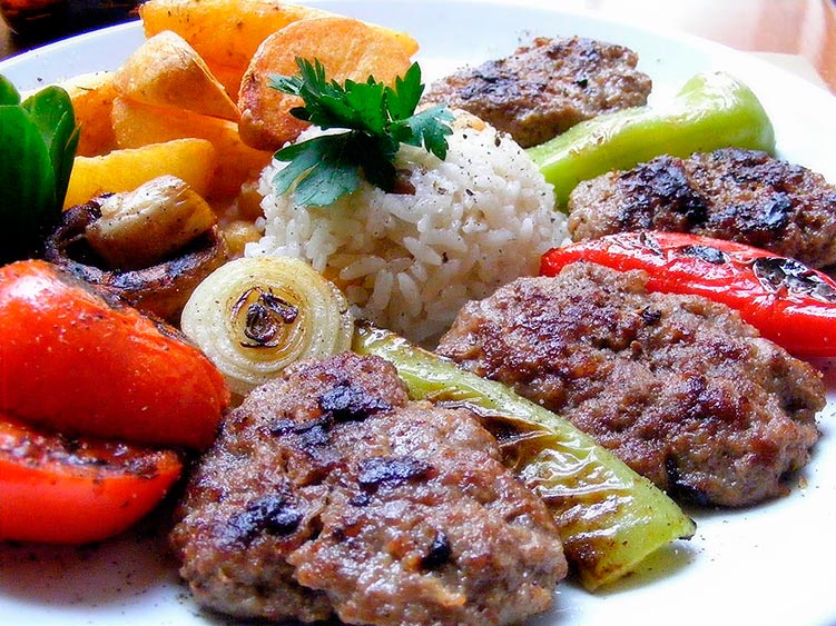 В меню супы, кефте, мезе, кебабы и другие восточные мясные блюда, на десерт пахлава своего приготовления.