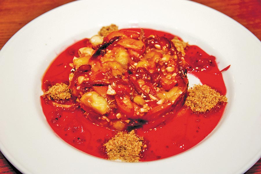 Нежелание загонять себя в какие-либо рамки привело к неожиданным, но органичным результатам. Рядом с мидиями в соусе мариньер и тартаром из говядины расположились мурманская сельдь с водорослями чука, а также блюдо с говорящим названием «Еврейское трио с мацой», куда входит сразу три вида ближневосточных закусок — форшмак, хумус и бабагануш.
