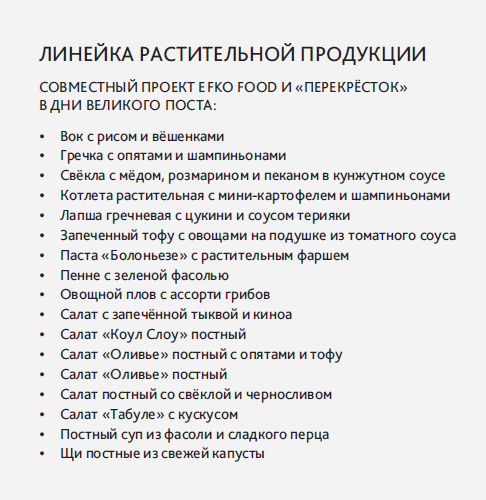 – Данный поставщик действительно предоставлял торговой сети «Перекрёсток» растительные альтернативы мяса. Совместно с EFKO FOOD к Великому посту мы запустили линейку растительной продукции. Получилось достаточно интересно.