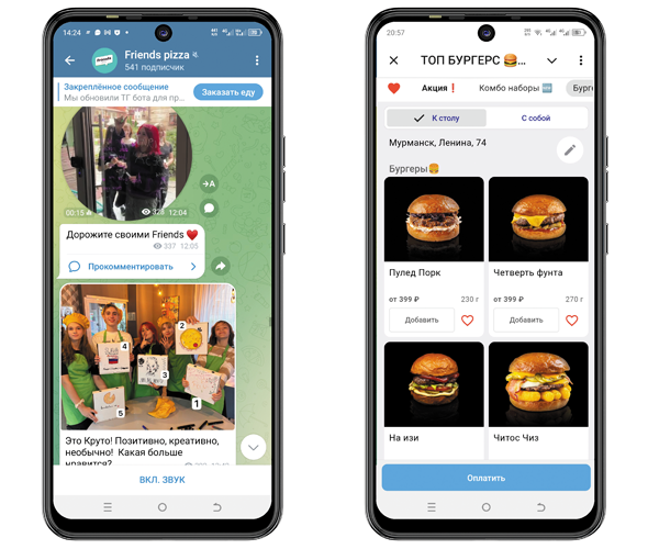 Технически всё просто, сложнее бывает убедить ресторан вести телеграм-канал. В нескольких случаях мне приходилось временно становиться админом канала ресторана, чтобы сдвинуть дело с мёртвой точки. Рассказать о своём заведении, поделиться видео с интерьером, сообщить об акциях – это очень естественно и нравится гостям. И я всегда ратую за то, чтобы меню, новинки, особенности блюд представлял шефповар, автор кухни и эксперт в своём деле. Это не только вызывает интерес, но и повышает доверие к ресторану. Есть примеры, когда о доставке рассказывает курьер, – и это здорово, ведь именно его вы и видите на пороге своего дома.