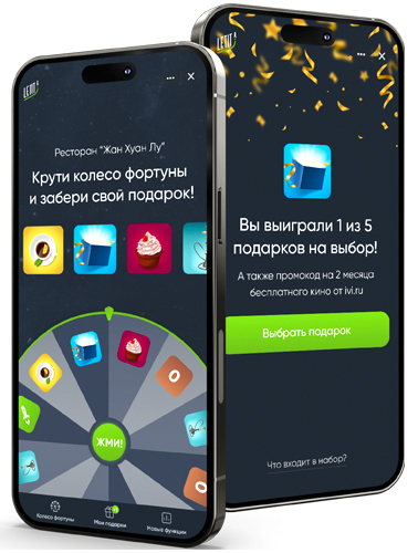 Итак, QR-код ведет гостя в мини-приложение на базе VK Mini Apps. Сразу скажу, что вашему гостю не нужно ничего скачивать. Он сразу попадает в это приложение и видит там «Колесо Фортуны», которое и позволяет ему выиграть один из призов, предоставляемых рестораном. Призом может быть любой комплимент от заведения, который ресторатор сочтёт разумной платой за нового лояльного гостя со всеми данными о нём.