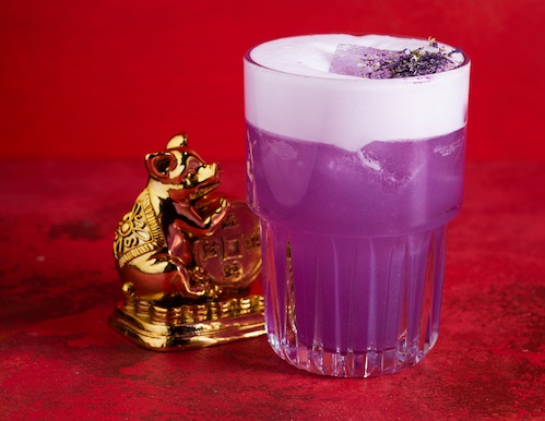 А Артём Лукьянов готовит праздничные коктейли — «Китайский мудрец» с джином, шалфеем, соком красного апельсина, лаймом и домашним сиропом из клевера и «Восточный цветок» с водкой, саке, анчаном, белым виноградом, домашним сиропом из кардамона и соком лимона (на фото).