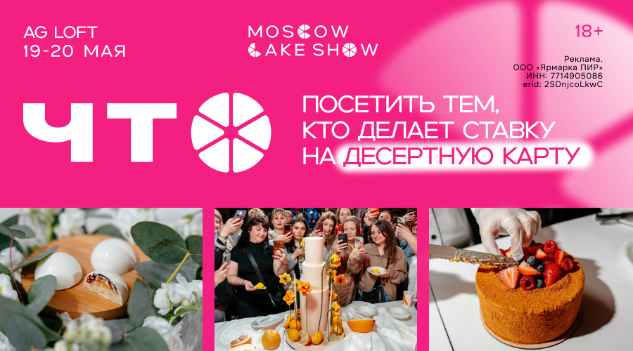 19–20 мая 2026 года в AG Loft (Варшавское шоссе, 33, стр. 3) пройдет 6-й форум Moscow Cake Show. Эксперты разберут уже готовые десертные карты, обсудят кондитерку как самостоятельную позицию в меню и поделятся рабочими инструментами для рестораторов.