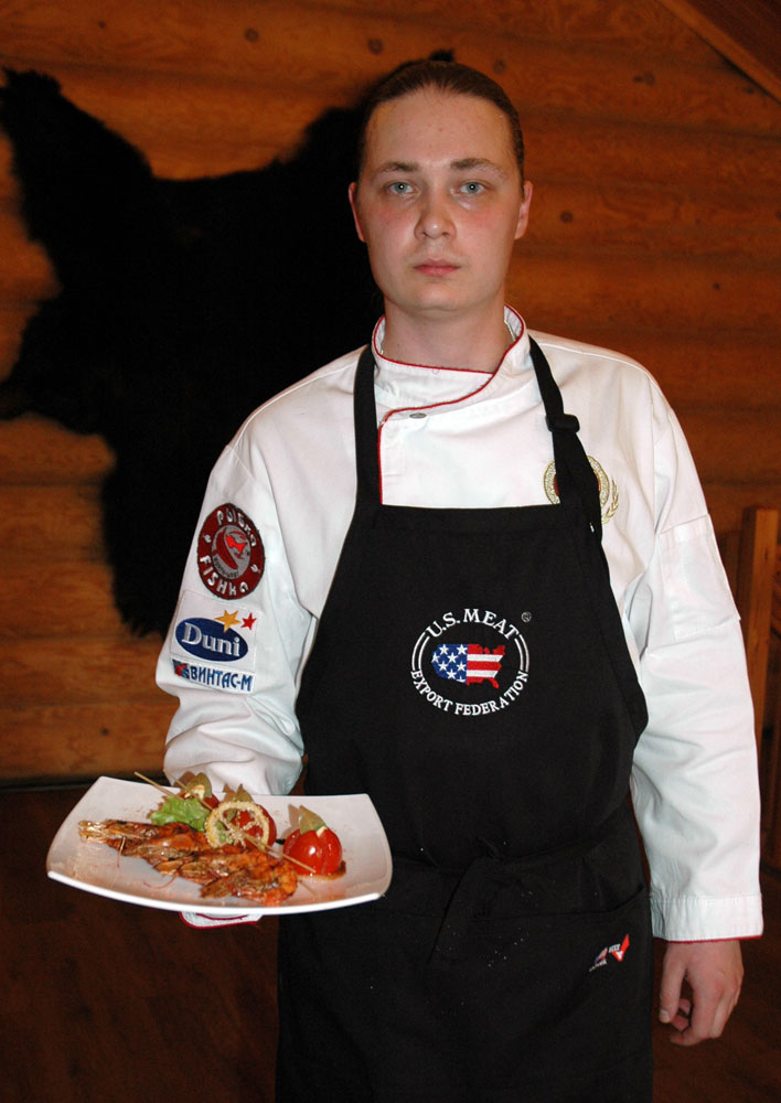 — Выездное обслуживание мне пришлось очень по душе — говорит Андрей. — Когда предложили стать шеф-консультантом в компании «Фиеста», организующей праздники, я с радостью согласился, потому что выездной банкет интересен своими широкими возможностями. Ведь для того, чтобы накормить одновременно несколько сотен человек, нужно быть хорошим организатором. Ты координируешь работу всех — поваров, официантов, — каждый должен работать как часы, так как четкость работы на выездных банкетах должна быть на высоте. Кроме того, здесь повар не связан рамками определенного меню. Клиент может заказать и итальянскую и русскую и, например, тайскую кухню: и мы воплотим любое желание заказчика, даже самое экзотическое.