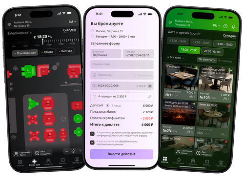 До 30 % броней теряются из-за ручного учёта. Но есть и менее очевидная проблема: хостес не видит полной картины посадки и отказывает гостям по телефону, хотя свободные столы есть. Каждый отказ = потерянная выручка