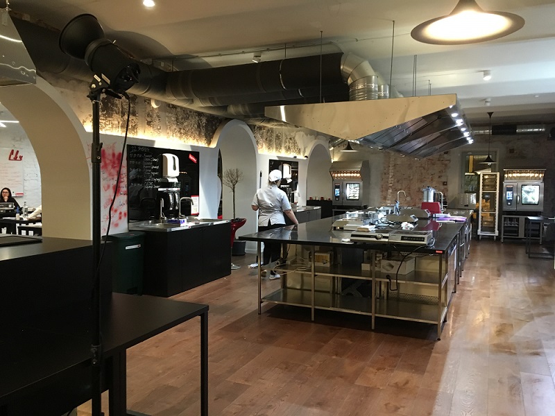 Практический класс рассчитан не только для профессиональных поваров, но и для поваров-любителей — В2С-аудитории. Шефская станция позволяет транслировать то, что делает шеф-преподаватель, на большой стол, за которым могут работать одновременно 12 человек. В этом зале располагаются три больших конвектомата с рекуперационной вытяжкой плюс множество другого оборудования.