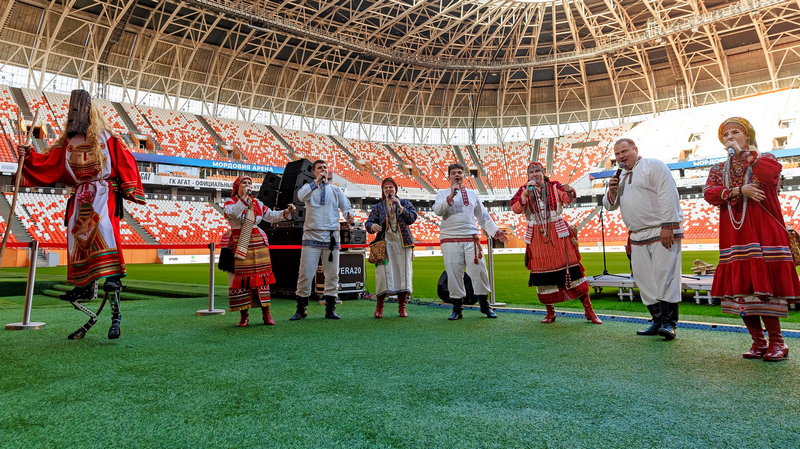 Гимн России в этот раз прозвучал в живом исполнении мордовской певицы. Программу продолжил этно-театр «Варма», чье выступление органично соединило элементы электронной фолк-музыки, этновокализа и театральной моды.