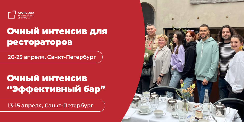 С 20 по 23 апреля в Санкт-Петербурге пройдет обновленный очный интенсив для рестораторов от Университета гостеприимства SWISSAM — программа, сфокусированная на прикладных инструментах управления и реальных кейсах индустрии.