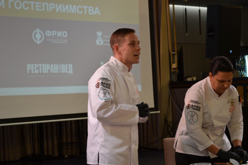 Виктория Богушева погрузила участников в создание «Закусок новогоднего меню», поделившись рецептами, которые помогут рестораторам удивить гостей в предстоящем праздничном сезоне. Ей ассистировал Станислав Ахметшин и параллельно знакомил гостей с непопулярной историей блюд новогоднего стола.