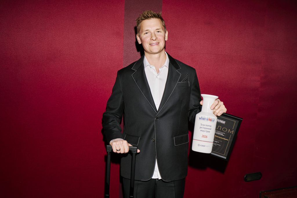 Приз «За вклад в развитие ресторанной индустрии страны» был вручен Александру Бельковичу, знаменитому российскому шеф-повару, ресторатору и кулинарному блогеру.