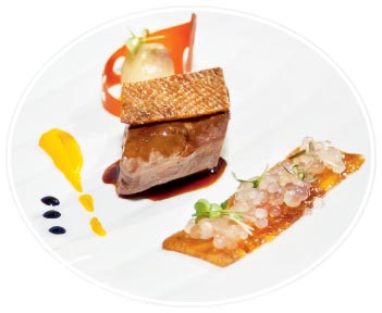 Вариация из утки в сопровождении карпаччо из хурмы, «икры» из шампанского, запеченного лука-шалот и соуса с ароматом апельсина от Павла Белялова, лучшего повара Санкт-Петербурга-2012