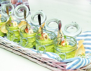 Багет с гороховым кремом и ветчиной
