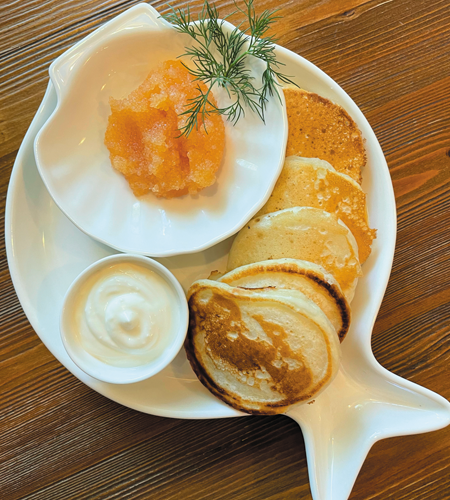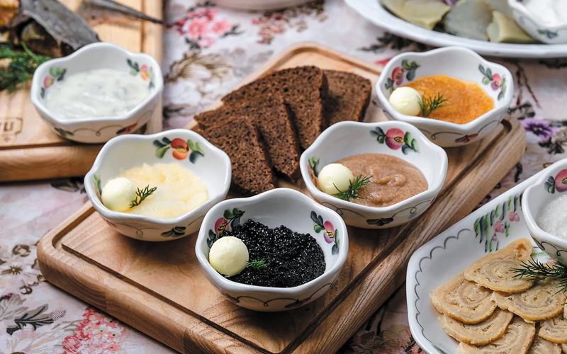 В наших ресторанах очень интересная подача русских блюд. В ресторане русской кухни «Пяткин» гороховый суп мы подаём в хлебе, а борщ – с гречкой. В «Навигации» есть старинные русские блюда, которые любят наши гости: лещ, фаршированный гречневой кашей, тельное из судака, пирожки-карасики, десерт «Павлова».