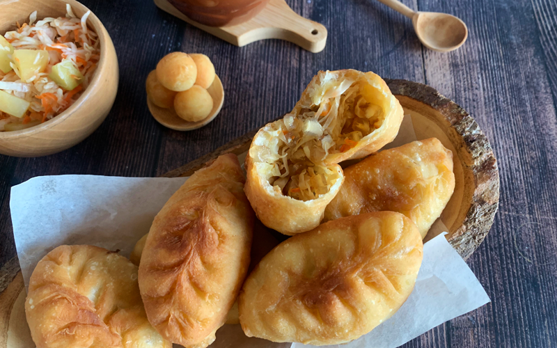 Мука пшеничная в/с 500-600 г Маргарин 72,6% 90 г Молоко 200 мл Вода 100 мл Меланж яичный пастеризованный 120 г Сахар 22 г Масло растительное 10 г Соль морская 5 г Дрожжи 7 г Молоко объединяем с водой, нагреваем до 36°С, добавляем дрожжи, сахар, даём дрожжам проснуться. Объединяем растопленный маргарин, меланж, соль, добавляем дрожжевую смесь, постепенно просеиваем муку, замешиваем мягкое тесто. Заключительным этапом добавляем растительное масло. Отправляем на расстойку. Тесто должно увеличиться в дватри раза. Тесто можно оставить в холодильнике на 12 часов. По астраханской традиции расстегаи с квашеной капустой и визигой подают к ухе из осетра или едят в качестве перекуса с чашечкой кофе, а жареные пирожки подают к чаю с лимоном или чёрной смородиной.