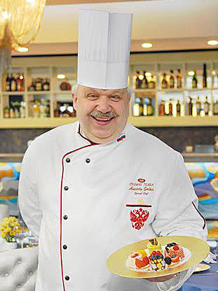 Анатолий Николаевич имеет колоссальный опыт работы шефом русской кухни в лучших отелях мира – Финляндии, Германии, Мальты, Мексики, Нью-Йоркской «Плазы», Японии… И везде был аншлаг! Поклонниками его кухни были певица Мадонна и Бред Питт, излюбленным блюдом которого был борщ с пампушами.