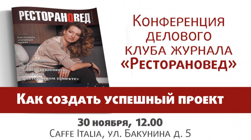 Уже завтра, 30 ноября, в 12.00 состоится встреча Делового клуба журнала «Ресторановед»  по адресу: пр. Бакунина, д. 5.
